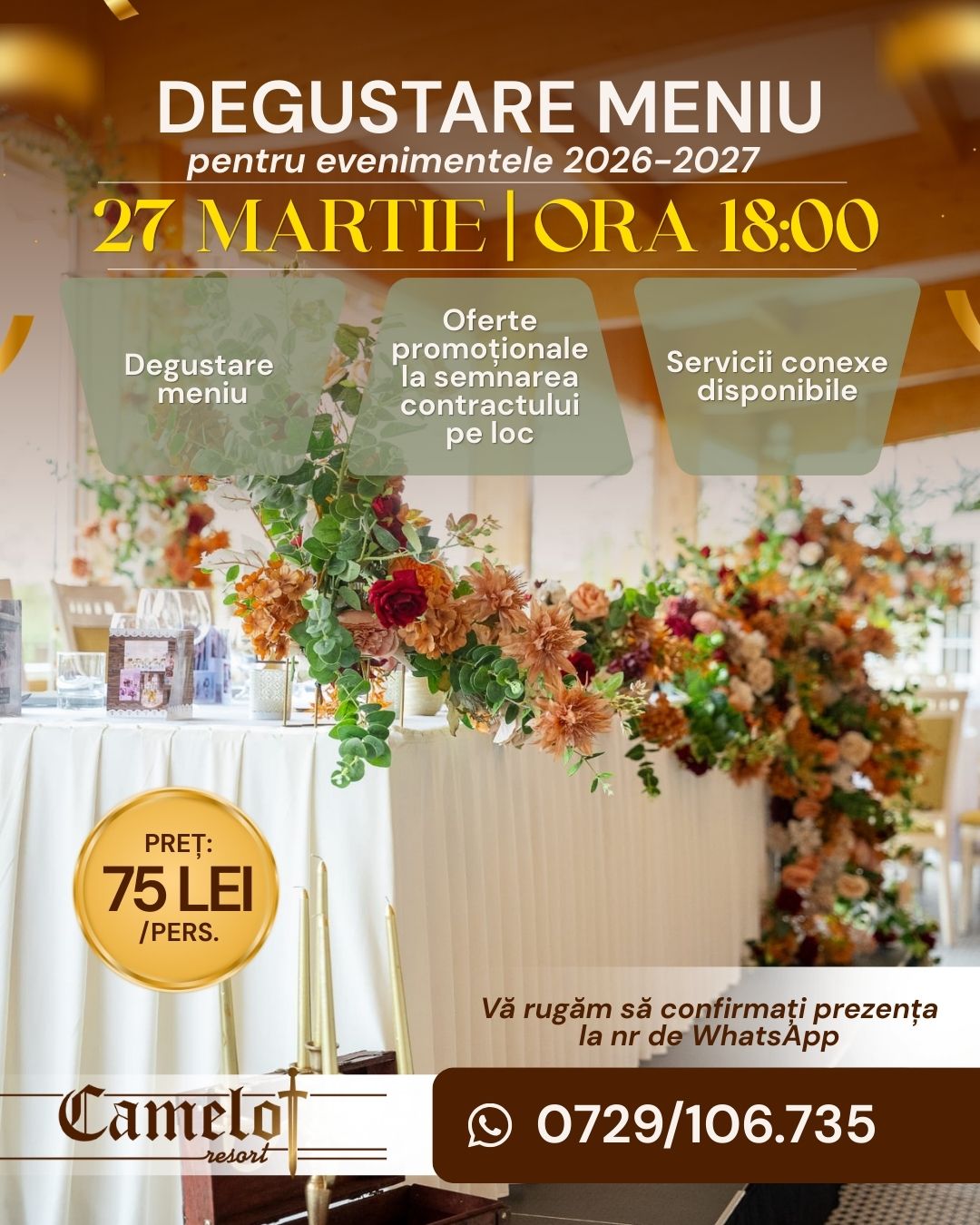Te așteptăm la CAMELOT RESORT ORADEA cu frumusețe, delicatese, voie bună!